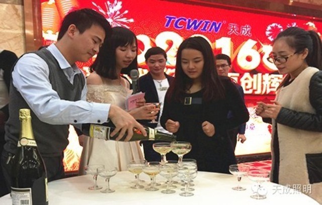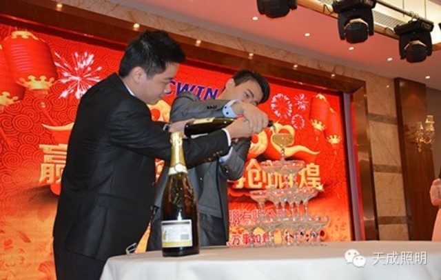Mr.Lin and Mr.Li opened champagne and the party was about to start.