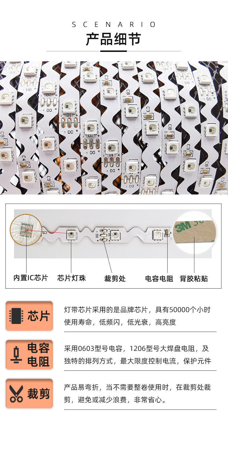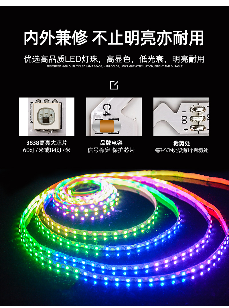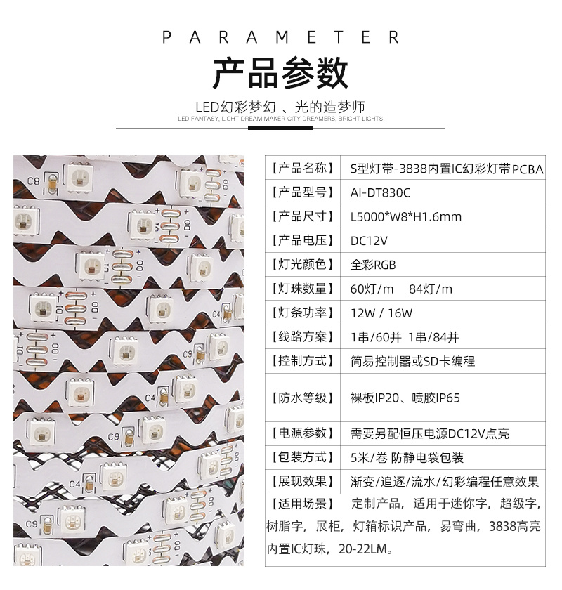 S型燈帶3838內置IC幻彩PCBA-60燈12V