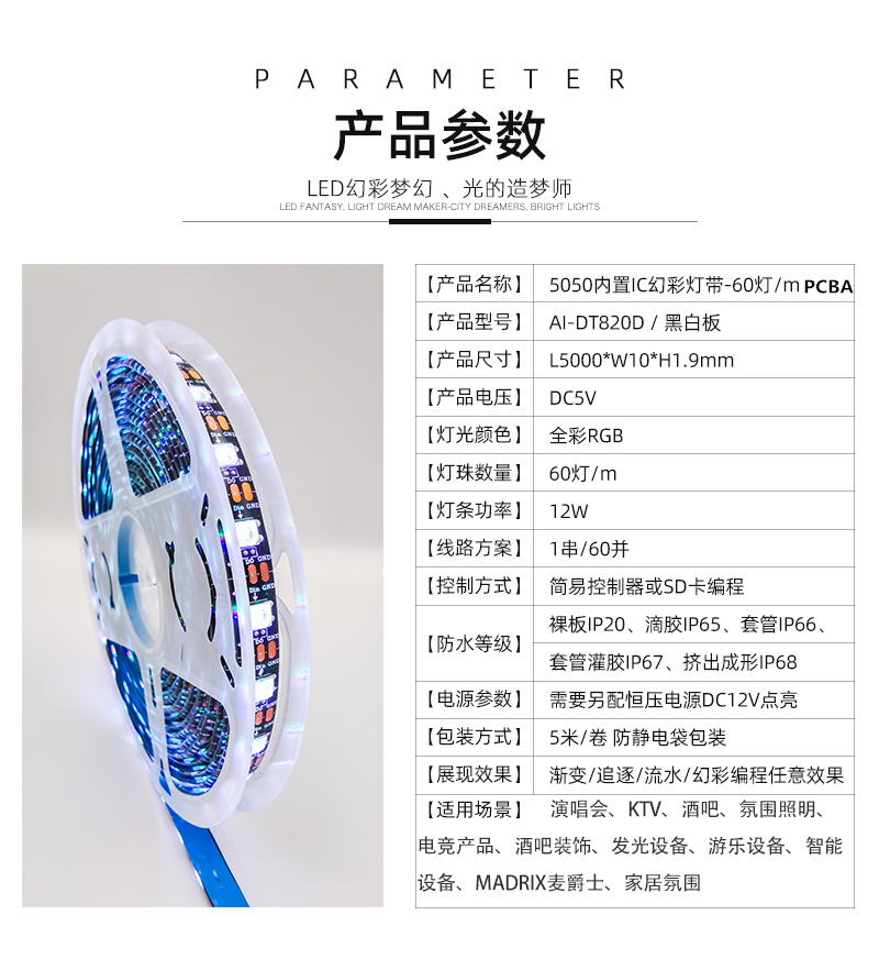 5050內(nèi)置IC幻彩PCBA-60燈5V