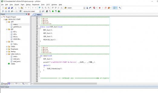 1、模板工程 不管是在GD官方的驅動庫程序(GD32L23x_Firmware_Library_V1.0.0),還是對應的開發板資源包(GD32L23x_Demo_Suites_V1.1.0)中,都提供了基礎GD32L233x系列的基礎工程和各個外設的基礎例程,方便熟悉、驗證我們需要使用到的外設功能、基于開發板的程序,可以讓我們快速的上手,以最快的速度投入開發; 參照官方的提供的KEIL模板工程,重新新建立了一個適用于自己的通用工程模板,基于開發板的硬件原理圖,將LED、KEY和USART0這幾個外設進行了配置,添加了自編的TASK任務調度程序;為了方便調試,基于USART0實現了Letter-shell的移植和應用,示意圖如下所示:
